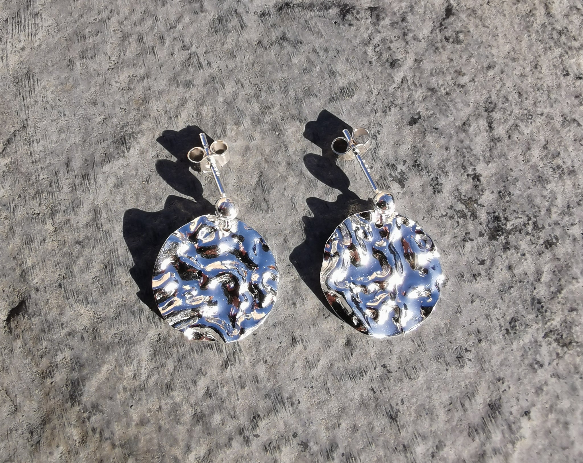 Sterling silver 10mm moon earrings. Stud fittings or hook fittings both available.