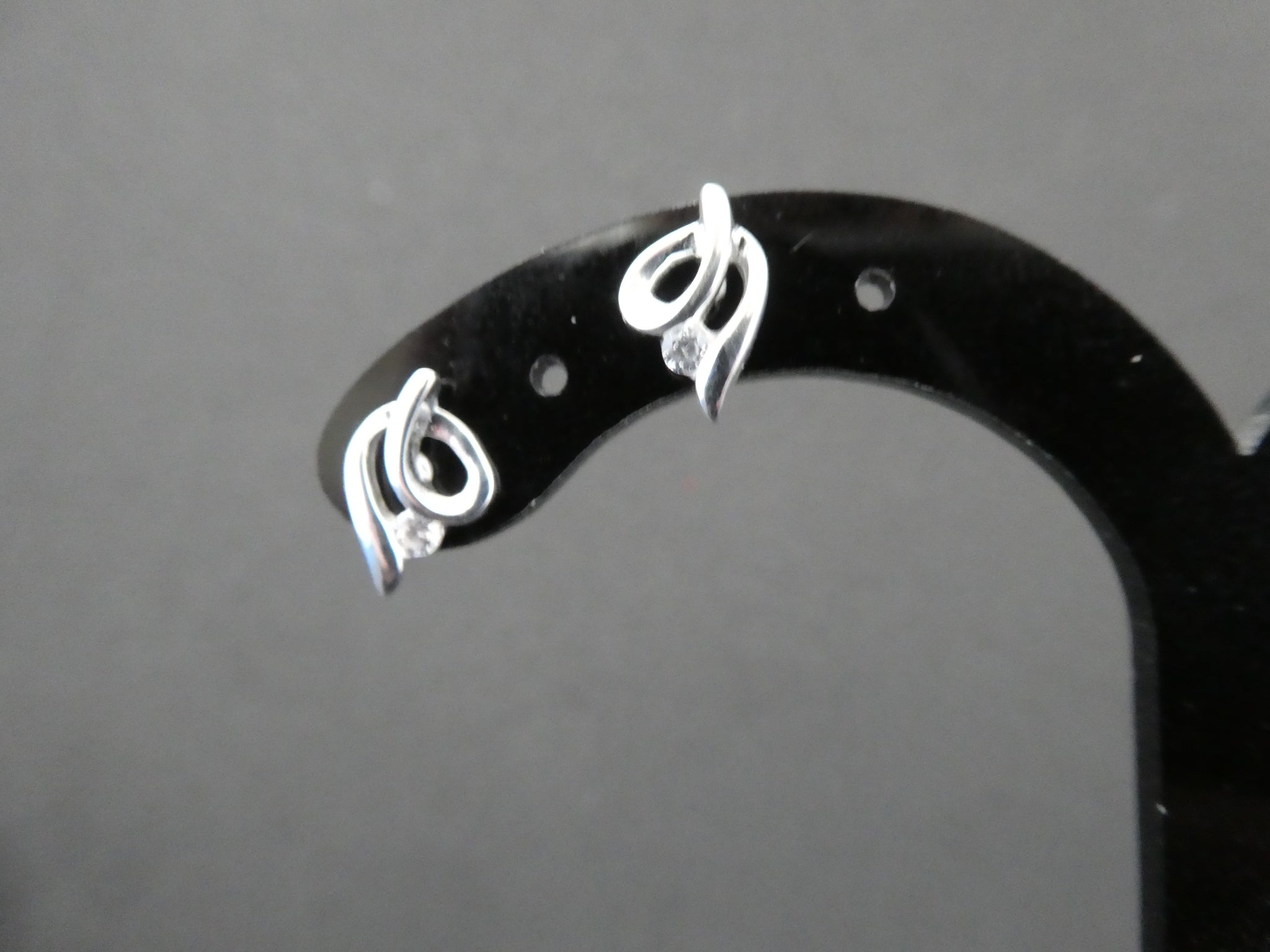 Sterling silver ready made twist earrings set with cubic zirconia.