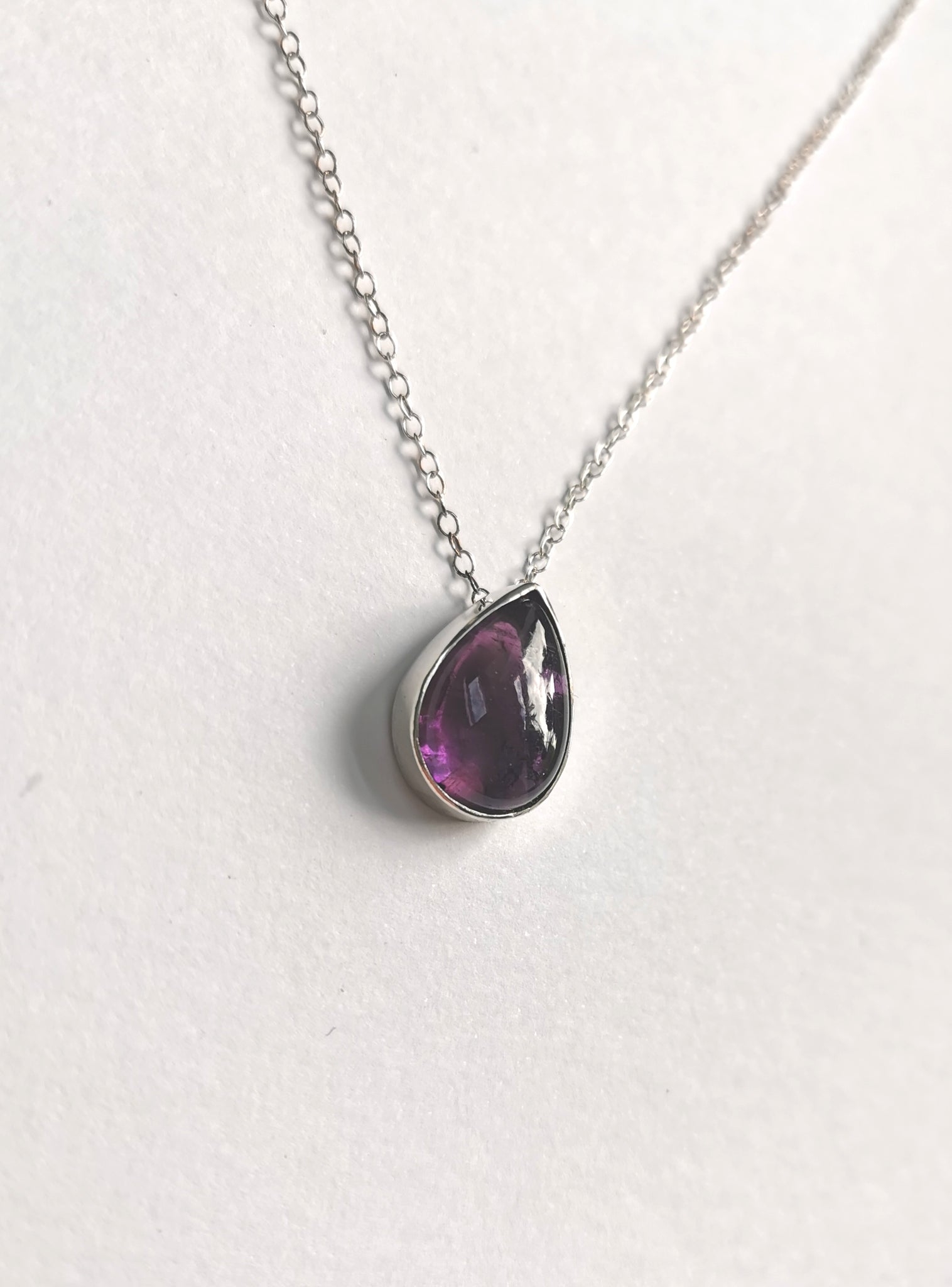 Sterling silver handmade pendant set with a single amethyst.