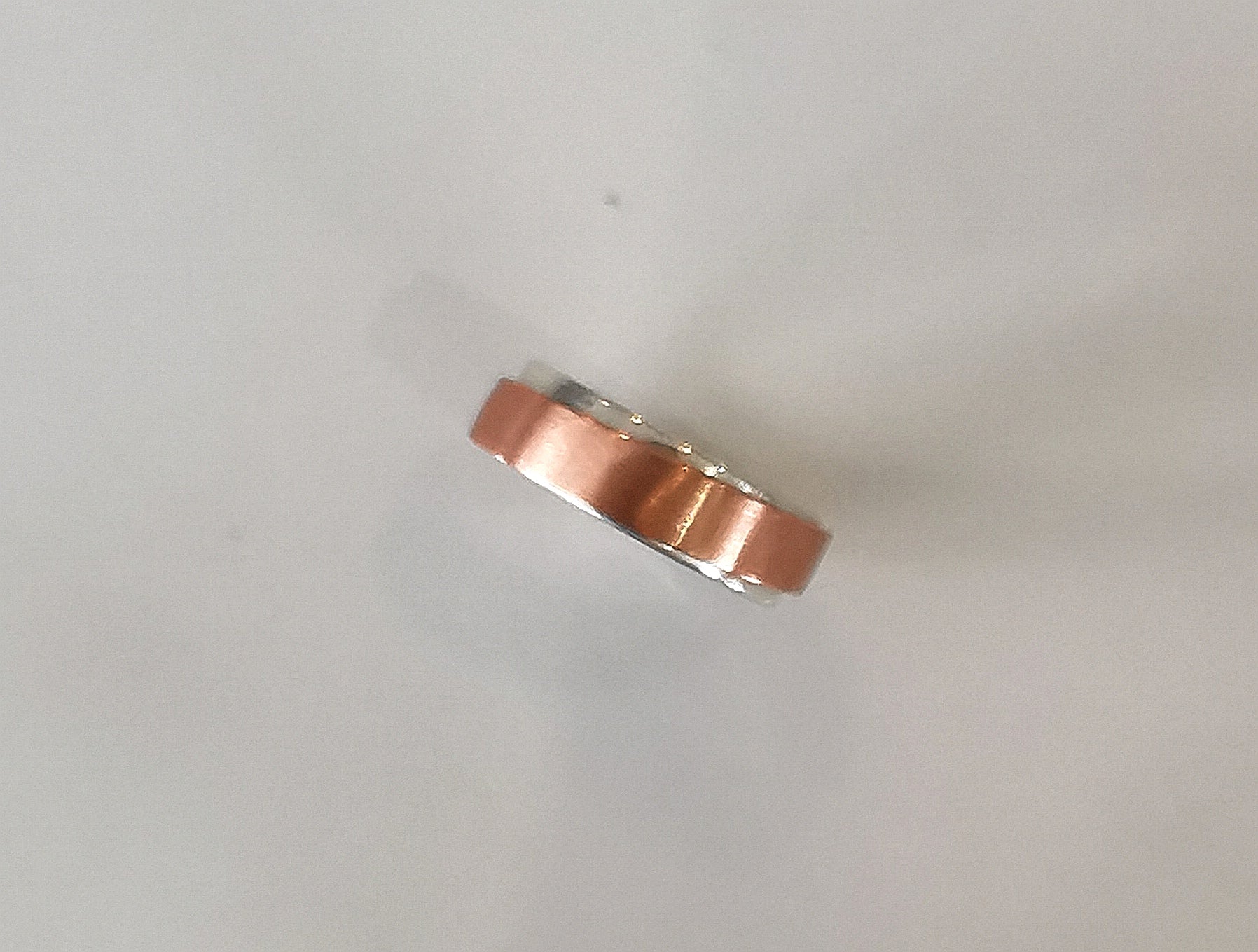 Sterling silver and copper band ring with a brushed finish. Size M1/2.